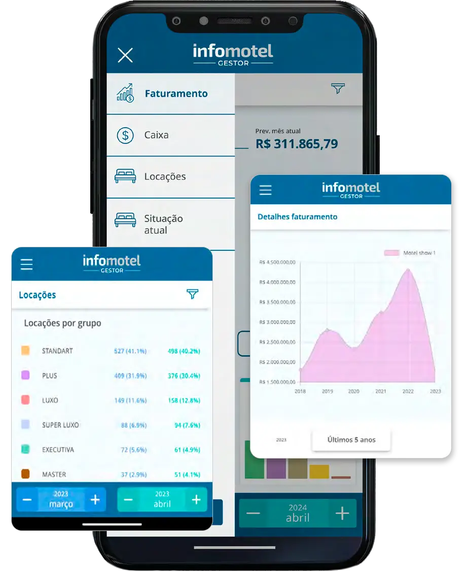 Com o InfoMotel, monitore os indicadores-chave do seu negócio de forma fácil e eficiente. De taxas de ocupação a faturamento, tenha tudo na palma da sua mão.